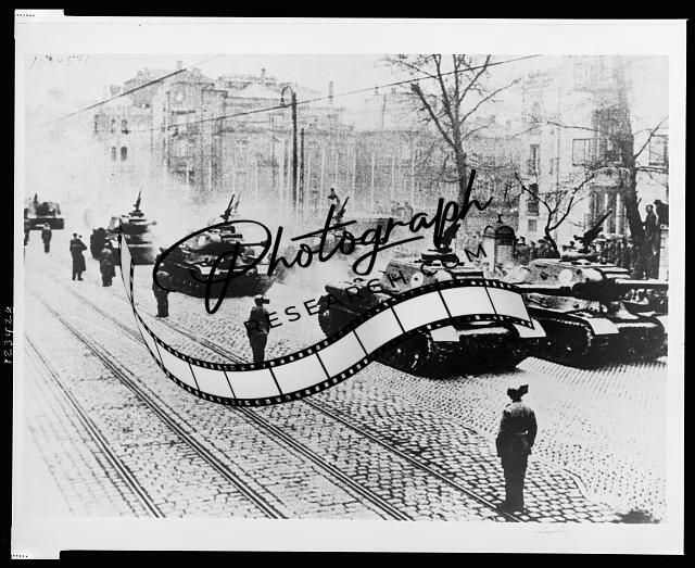 Soviet Tanks Parade Through Streets,Budapest,Hungary,1952,Military,Soldiers