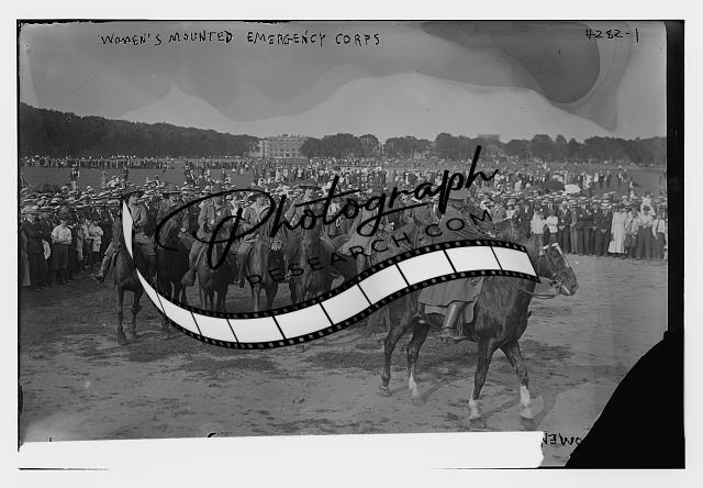 Women's Mounted Emergency Corps (2nd Field Artillery),horseback,women,Bain News