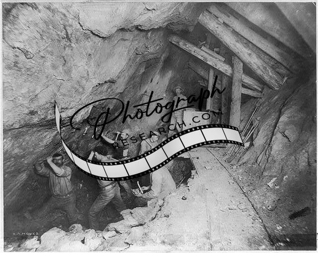 Miners pose in coal mine,c1906,Mine Shaft,Pickaxe,Ladder,Dirt Wall