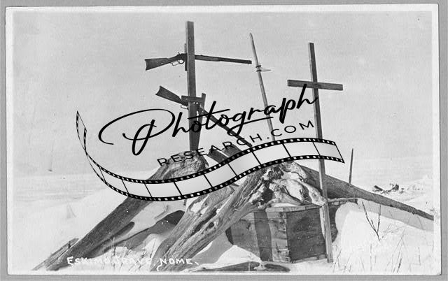 Eskimo's grave,Indians of North America,Nome,Alaska,AK,1900-1930,Crosses,Rifles