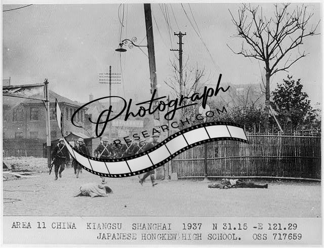 Japanese infantry assaulting Hongkew High School,Kiangsu,Shanghai,China,1937
