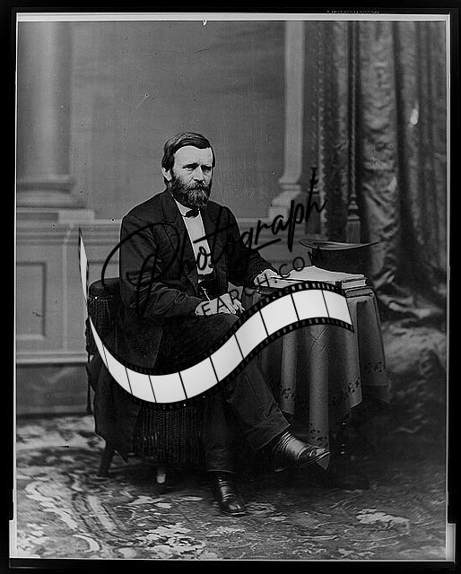 Ulysses S. Grant,at table with books,top hat,President of United States,c1875
