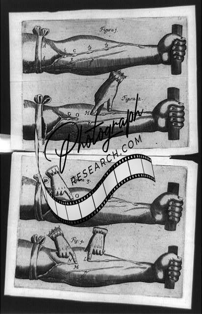 Forearm,arteries marked,show blood flows,heart,continuous one-way cycle,1643