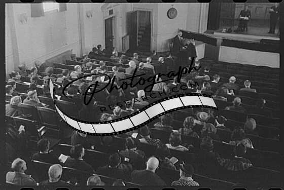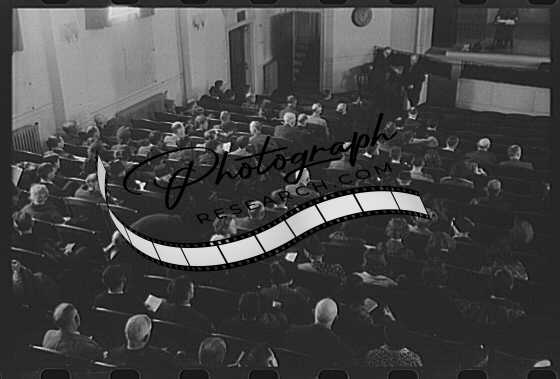 Title: Townspeople listening to discussion and balloting during town meeting. Woodstock, Vermont