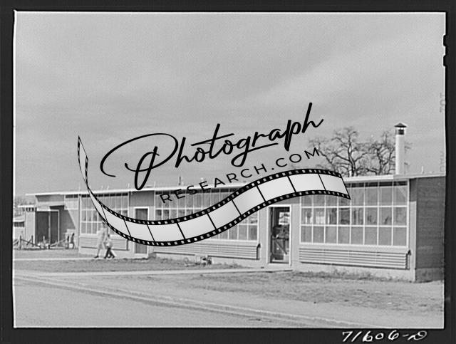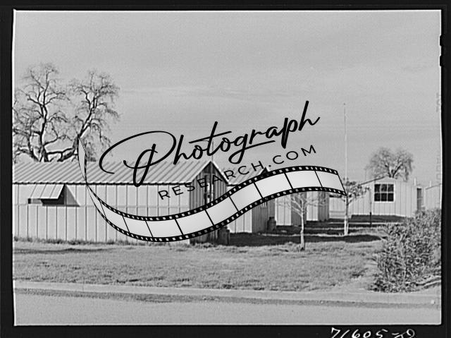 Title: Woodville, California. FSA (Farm Security Administration) farm workers' community. End of the utility building which includes the toilets