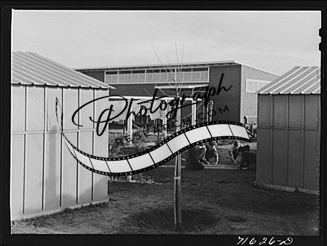 Title: Woodville, California. FSA (Farm Security Administration) farm workers' community. Children of the nursery school playing. The nursery school uses two rooms of the central community building