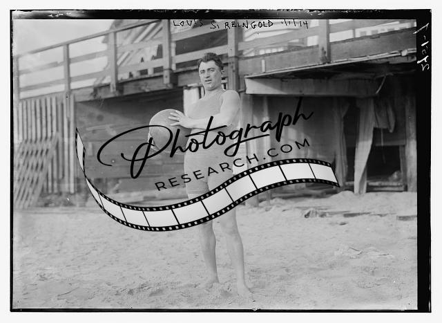 Louis S. Reingold,January 1,1914,bathing suit,holding ball,beach