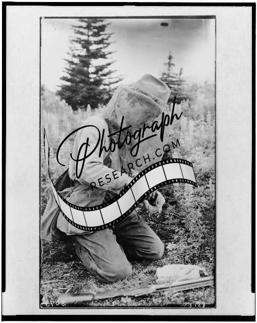 Harry S. Swarth,wearing mosquito netting,collecting bird specimens,1919