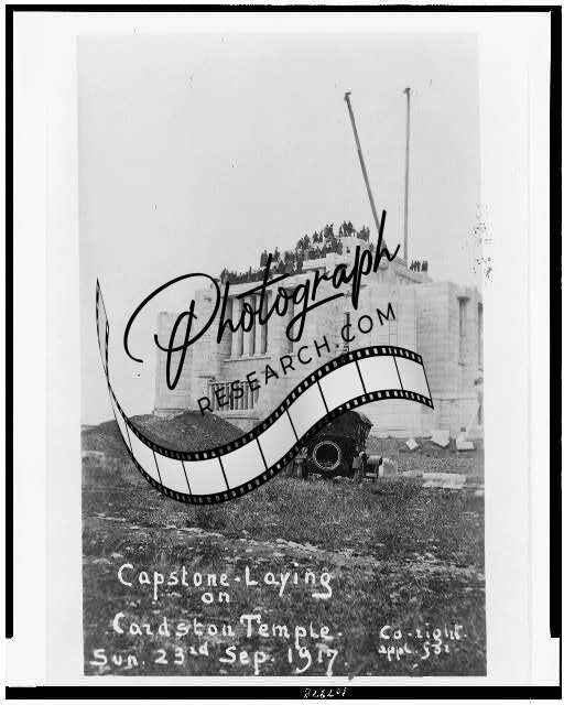 Capstone laying,Temple Cardston,construction,Latter Day Saints,Alberta,c1917