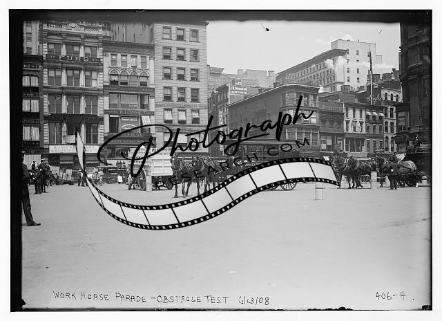 Work Horse Parade,obstacle test,seen from above,New York,buildings,NY,1908