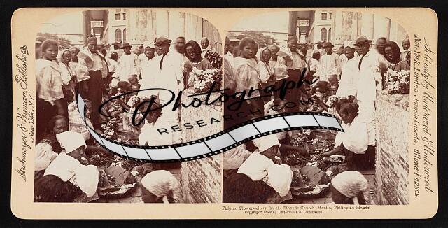 Filipino flower-sellers, by the Binondo Church, Manila, Philippine Islands