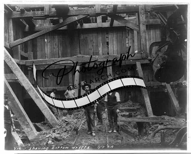 Railway tunnel construction,Washington,DC,7 men at bottom of drifts,c1904,RR