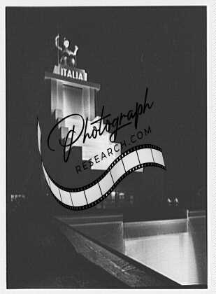Title: World's Fair, Italian Line restaurant, Italian Building. View from without, night view from terrace