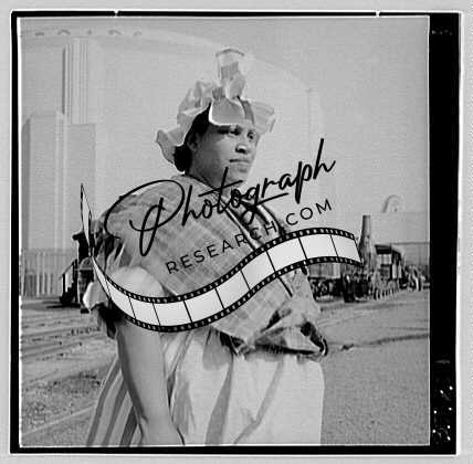 Title: World's Fair, railroad pageant. Costume figure with parasol
