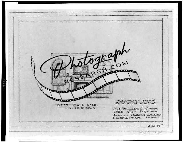 Alterations to a house for Mr. and Mrs. Joseph C. Harsch, 2808 N Street, N.W., Georgetown, Washington, D.C. West wall rear living room