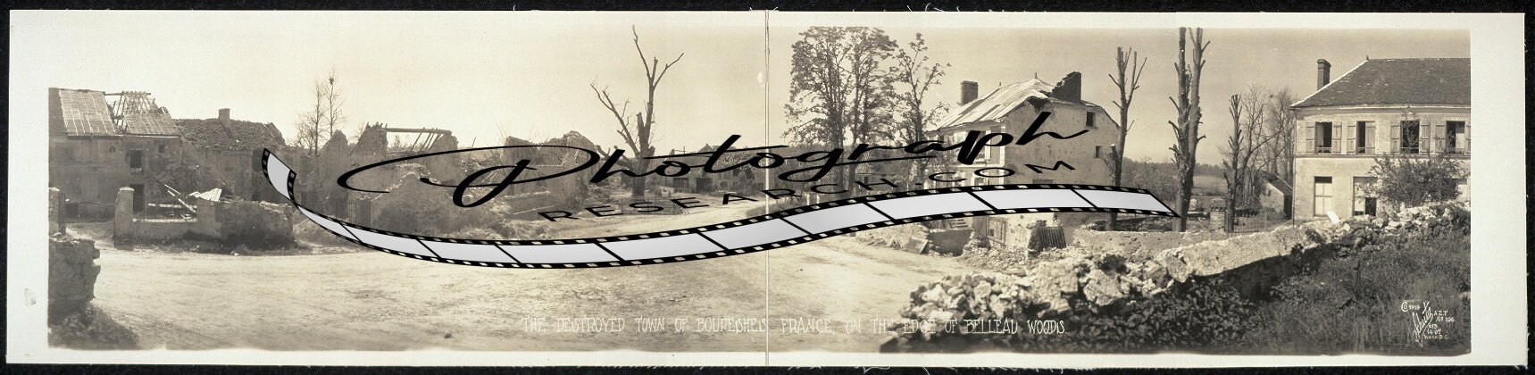 1918 Panoramic: Destroyed town of Bouresches,France,Belleau Woods
