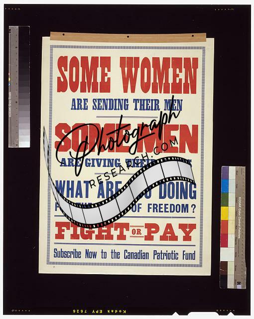 World War I,WWI,Canadian Patriotic Fund,Fight or Pay,War Bonds,1915,Women