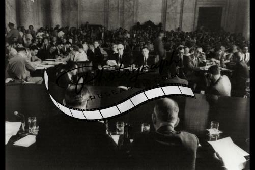 James R Hoffa testifying,George S Fitzgerald,John McClellan,Irving Ives,1957