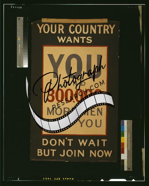 Your Country Wants You,World War I,WWI,Don't Wait but Join Now,Recruiting,1915