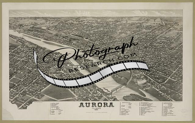 Aurora,Illinois 1882,Kane County,IL,bridge,buildings
