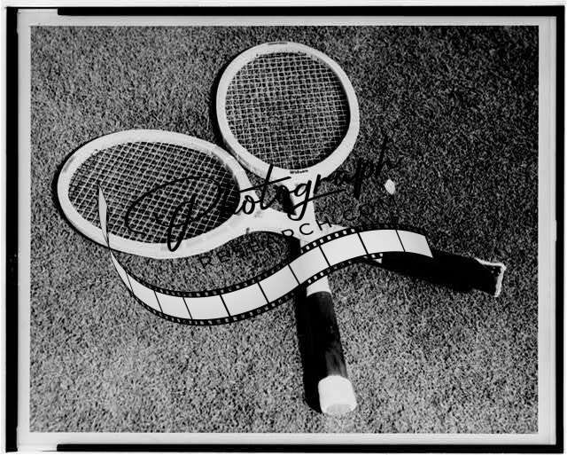 Photo of Two Tennis Rackets,'X' Formation,lying on turf,1946,Sports