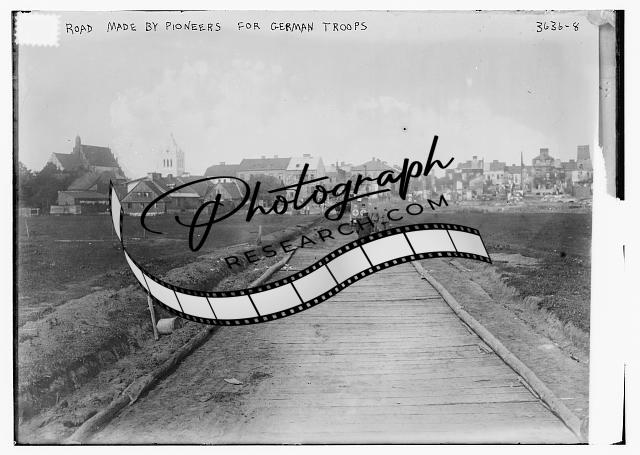 Road made by pioneers for German troops,buidlings,people,Bain News Service