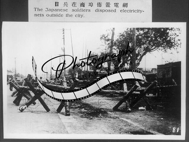 Japanese soldiers disposed electricity-nets outside,city,fences,Jinan,China,1928