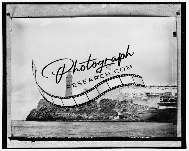 Raising American flag,military occupations,Morro Castle,Havana,noon,Cuba,c1900