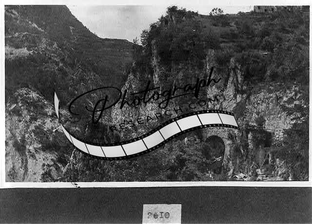An American Red Cross ambulance on mountain road over tunnel on Italian Front