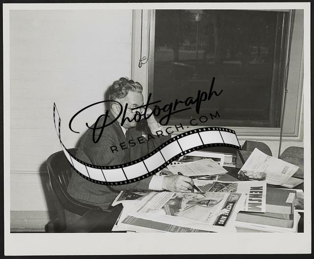 Roy Emerson Stryker,looking through photograph,1935-1944,Farm Security Admin
