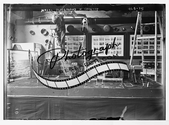 Model playground,schoolhouse in country,New York State,NY,person on ladder