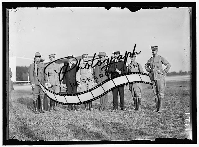 Title: WRIGHT FLIGHTS, FORT MYER, VA, JULY 1909. SPECTATORS: MAJ. G.O. SQUIER; REP. PRINCE; GEN. ALLEN