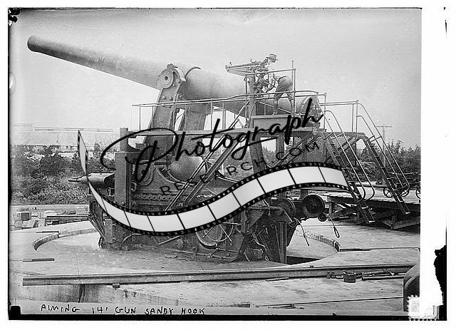 Aiming 14' gun -- Sandy Hook,artillery,man,1910-1915,Bain News Service