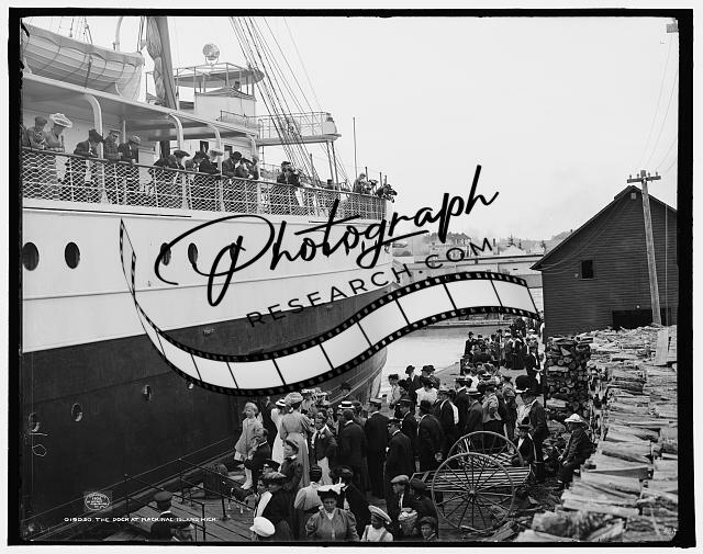 Dock,passengers,piers,wharves,docks,boats,ships,Mackinac Island,Michigan,c1906