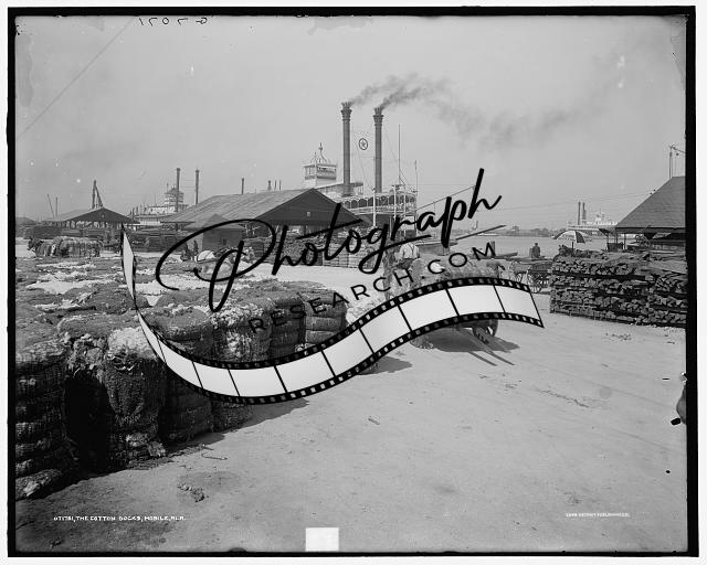 Cotton docks,piers,wharves,shipping industry,steamers,Mobile,Alabama,AL,c1905 1