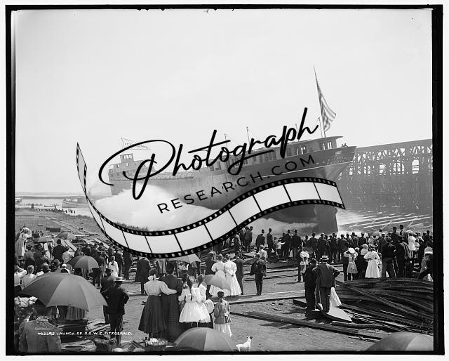 Launch SS WE Fitzgerald,cargo ship,freighters,crowds,Wyandotte,Michigan,MI,c1906