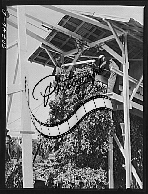 Title: Kiln, sacked green hops in foreground. Yakima County, Washington