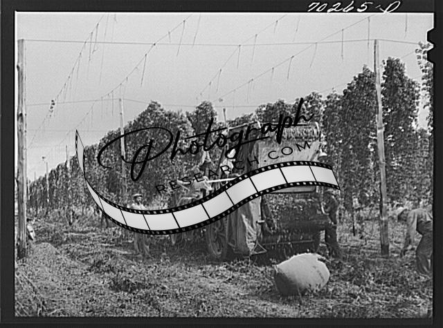 Title: Workers at the repicking or cleaning apparatus where a stationary-type picker is used for picking hops. Yakima County, Washington