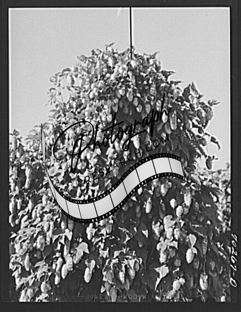 Title: Portable-type hop picker at work in the fields, Yakima County, Washington. In 1940 there were two mechanical pickers in this county, this year (1941) there were thirty-eight, thirty-three of which were this type. Using the machines fifteen men displace one hundred hand pickers on same numbers of hours worked