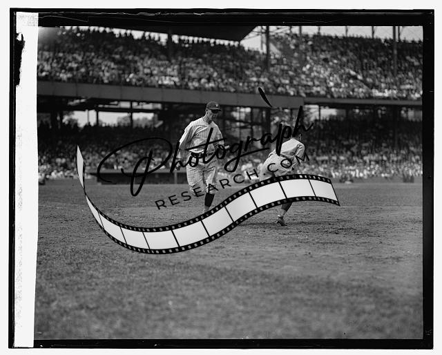 Yankees Lou Gehrig,Joe Harris,Hank Severeid of Senators,Baseball,Umpire Nallin