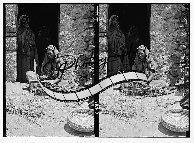 Woman making straw basket,American Colony Jerusalem Photo Department,Middle East
