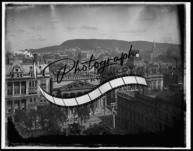 Montreal,Church,plaza,mountain,religious building,Notre Dame,Quebec,Canada,c1900