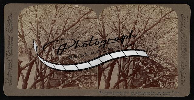 Cherry-blossoms along the moat surrounding the Imperial Palace park, Tokyo, Japan