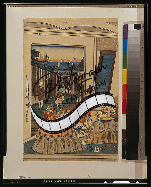 Yokohama ijin yashiki no zu,1861,Yoshikazu Utagawa,Japanese,Photo,Kitchen,food