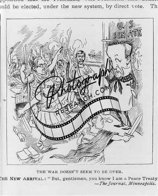 The war doesn't seem to be over,Political Cartoon,US Senate,1899,Peace Treaty