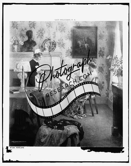 Penelope,interior,embroidery,women,Gari Melchers,Detroit Publishing Co,c1900