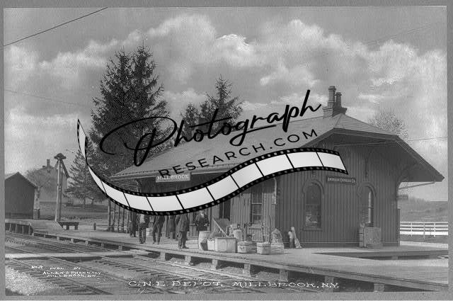 Railroad station: Millbrook,Dutchess County,New York,N.Y.,c1910's,People,bags