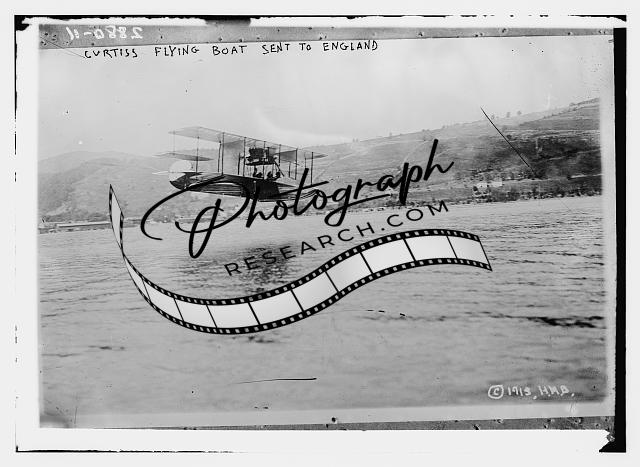 Curtiss boat sent to England,airplane flying over water,Aviation,1910-1915