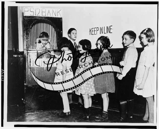 American education,banking,playing,adults,lines,window,Yonkers,New York,NY,c1943