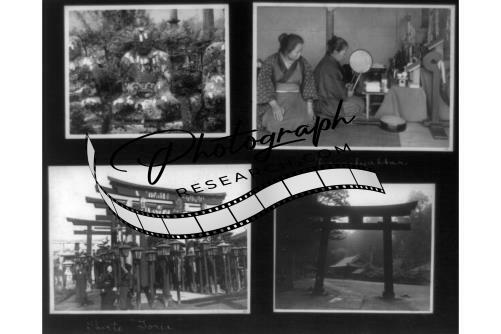 Statues of Buddha with offerings,family altar,Shinto Torii,Shrine,Japan,1915-25